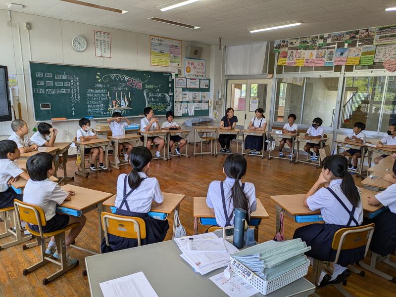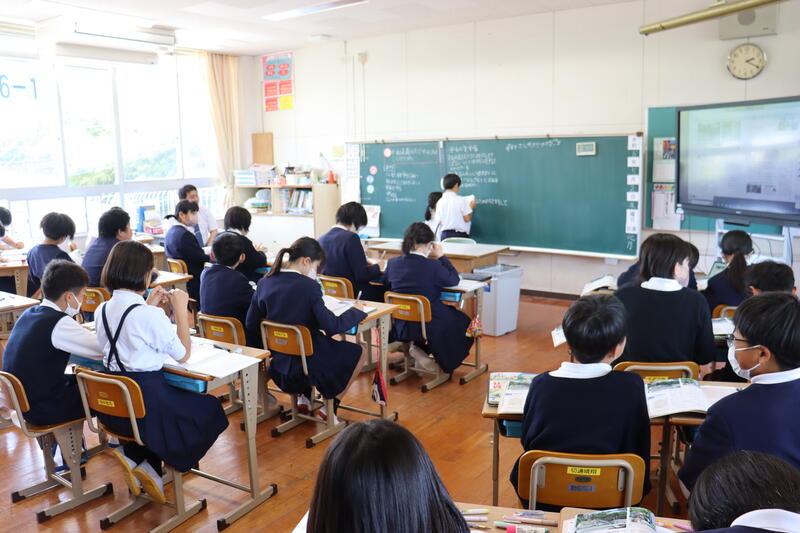 総合的な学習の時間の学びが広がっています。今日は地域の水質保全活動に取り組んでいらっしゃる山川さんにおいでいただき、校区の水環境について学びました。校区地図をもとに水質改善の方策を考える学習活動を行いました。水俣に学ぶ肥後っ子教室から身近な環境への問題意識がつながる機会となりました。