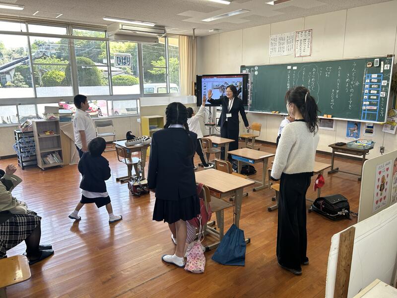 〔日本の去られるALTのリリー先生とお別れの式をしました〕