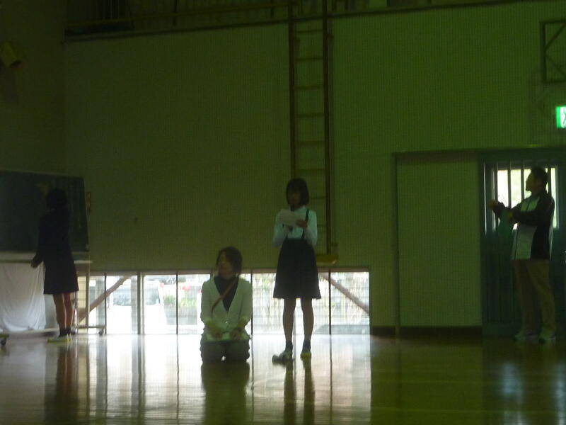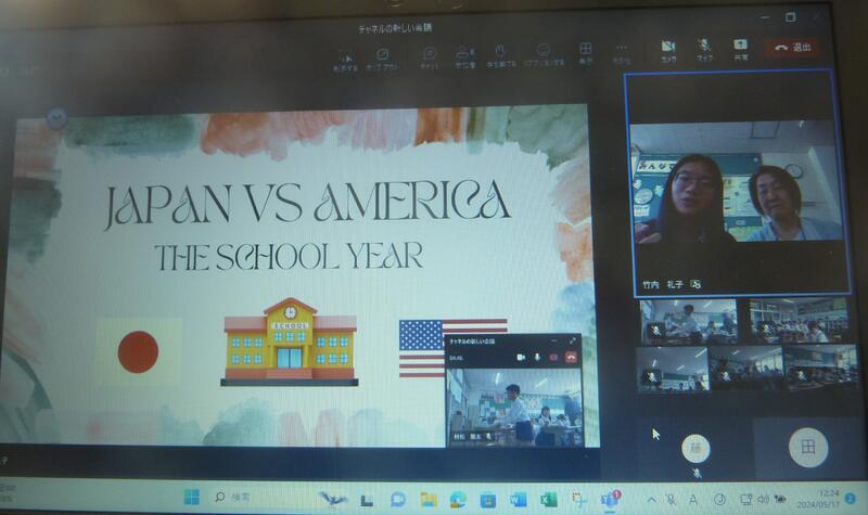 (アメリカ時代の高校生活の様子をスピーチするリリー先生) ※MCは竹内先生が努めました。