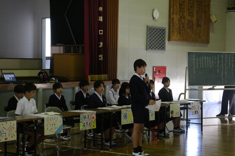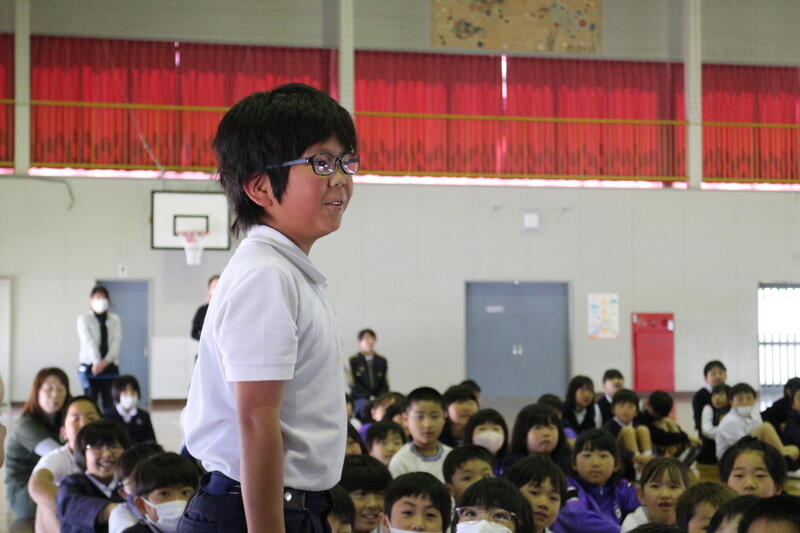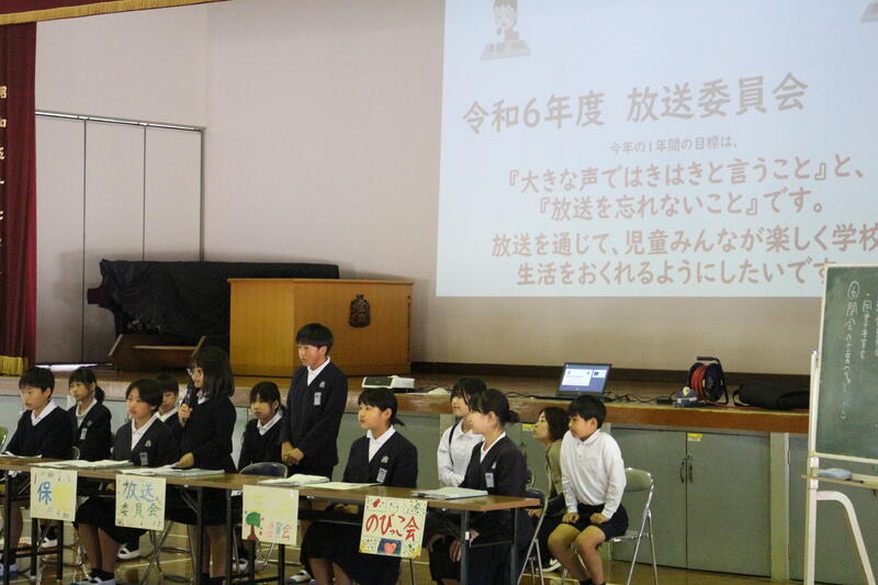 のびっ子167人が一堂に会して、児童集会「のびっこ子供会議」を開催しました。「よりよい学校生活を、すすんで、自分で、自分たちで」と、みんなで考える集会活動です。会議の初めには、運動会のスローガンの発表もありました。会議では、各委員会の年間計画の紹介があり、その内容に、たくさんののびっ子が質問や感想を出し合っていました。一年生が「どうして勉強をするんですか?」という質問にも、「夢を叶えるためです!」と、笑顔で答えるの6年生の姿がありました。もっともっと時間が欲しいと感じた集会でした。