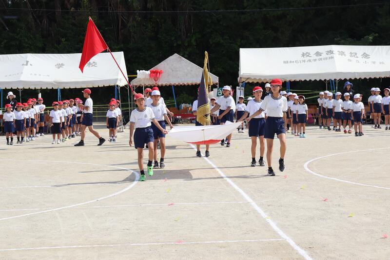 〔前日は保護者の方々からグランドを整ていただきました〕〔開会式・入場行進〕