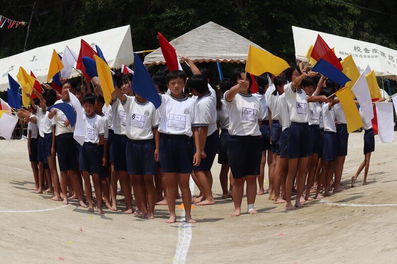 一年生が運動会の旗をつくりました。みんな初めての運動会に臨みます。やる気満々です。いよいよ、のびっ子が運動会へ向かってすすみます。
