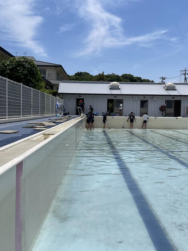 水泳学習の準備を行いました。二日間かけてプール掃除をしました。5、6年生が中心となってピカピカに磨き上げてくれました。今年はのびっ子全員で役割をもって取り組みました。「友情の水」を八代からいただいています。感謝の気持ちをもってプールでの学習に臨んでください。