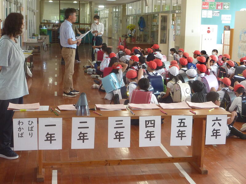 大雨を想定した訓練を実施しました。家庭と連携して子供たちを安全に下校させる取組です。計画通り全員を保護者の方々に引渡し、下校させることができました。ご協力ありがとうございました。
