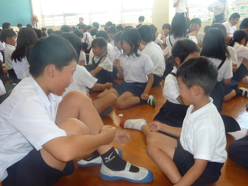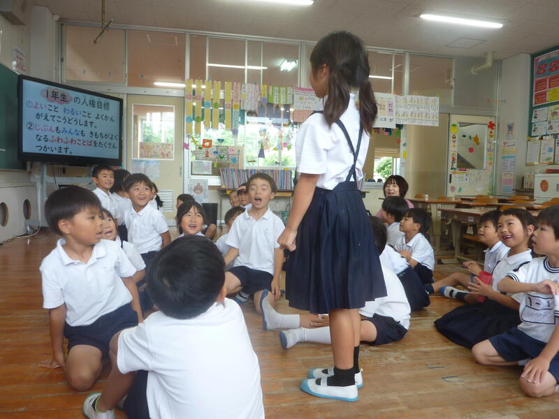 心のきずなを深める月間も終盤に入りました。先日の人権集会で、友だちと「つながる」ことを意識して学校生活を送っているのびっ子です。各学級でも様々な取組が進んでいます。今日は一年生が「きずなパワーアップのかい(会)」と題して、クラスイベントを行いました。「友だちを知る」「友だちと楽しく交わる」といった内面の高まりに向けて日常生活で感じたことを活動を通して確かめ合っていました。