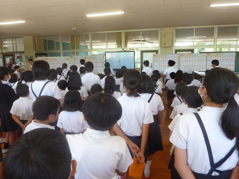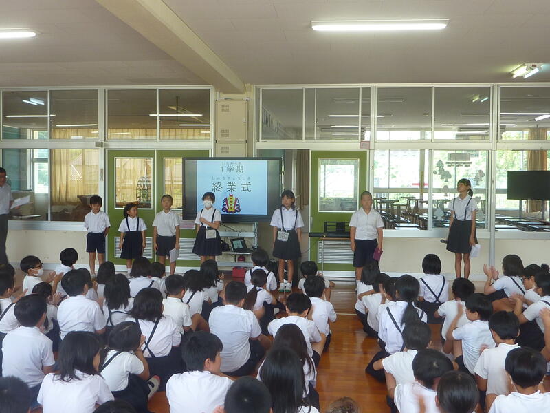 本日、一学期の終業式を行いました。体育館改修に伴い、校舎内ホールで実施しました。のびっ子全員が一学期の生活を振り返りながら成長を確かめ合いました。元気に、そして、楽しく夏休みを過ごしてください。よく頑張りました。
