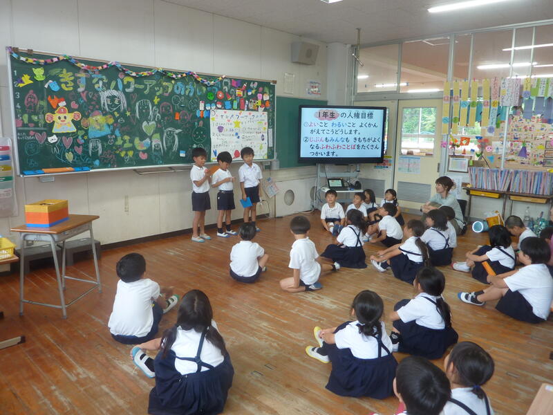 (のびっ子人権宣言の公表-のびっ子会で多くの思いを込めました)(学級の目標を紹介合いました)