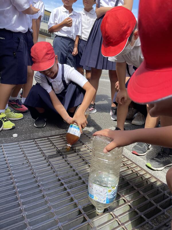 (講師の山川さん)(学校周辺の水環境を調べて回りました)
