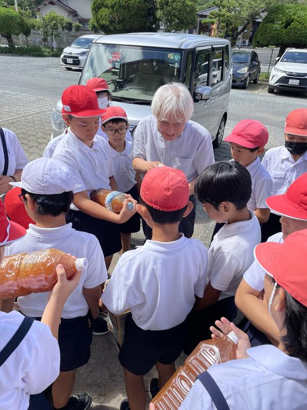 〔復路ではのびっ子SDGs大作戦の一環で5、6年生が清掃活動にも取り組みました〕