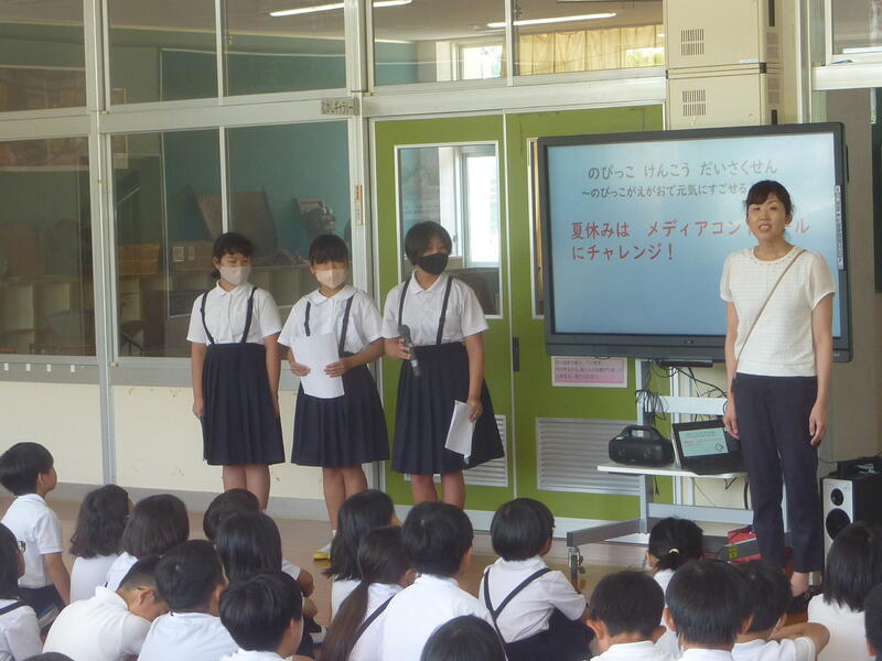 〔夏休みの暮らしについて、保健委員会のみなさんが伝えてくれました〕