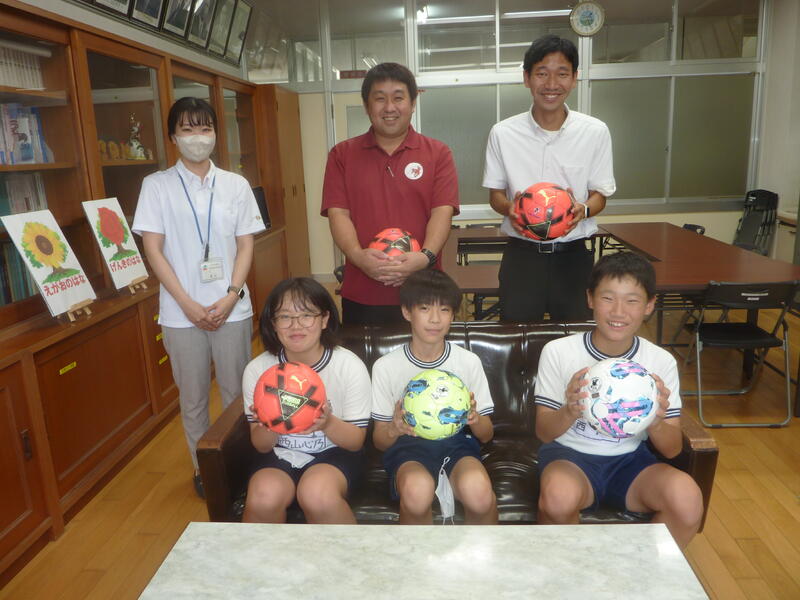 本日、サッカーボールの寄贈がありました。「1ゴールアシスト5」プログラムというプロサッカーチーム(ロアッソ熊本)と県内企業(熊本トヨタ自動車株式会社)の共同実施によるものです。ご厚意に心より感謝し、有効に活用させていただきます。
