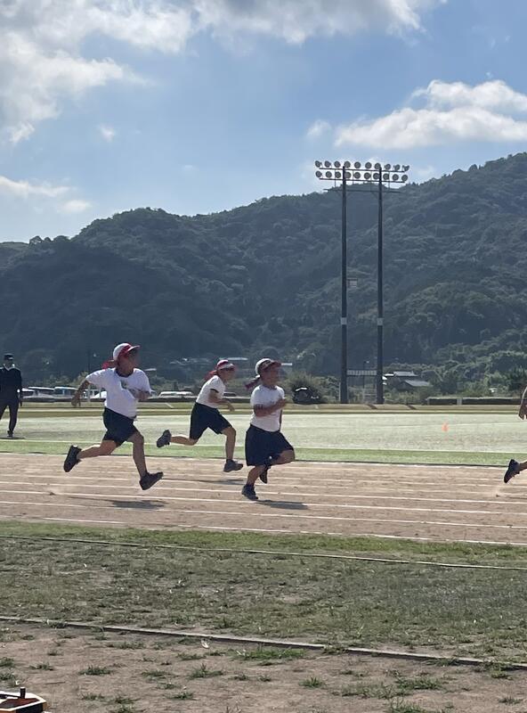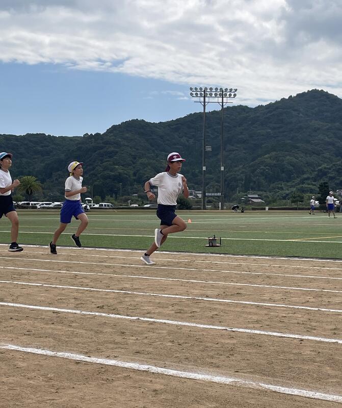 今日は快晴の下、市内の全小学校から5年生、6年生が集い、陸上記録会が開催されました。のびっ子たちも二学期のスタートとともに続けてきた練習の成果を発揮していました。自己記録の更新に向かって精一杯の力で競技に参加しました。