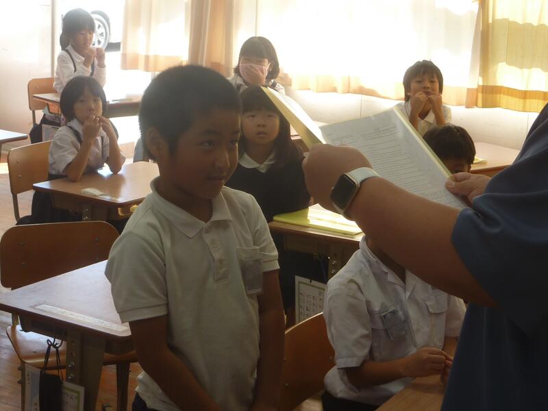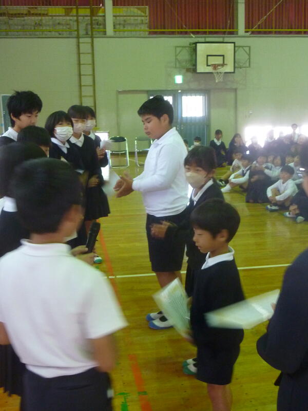 今日は、児童集会を開きました。「命の集会」と題して、保健委員会のみなさんが、絵本「ええところ」の読み聞かせをしてくれました。その後は教室に戻って、学級の友だちの「ええところ(よさ)」について伝え合ったのびっ子たちでした。また、集会では、おにぎり給食での「おにぎりグランプリ」の表彰もありました。