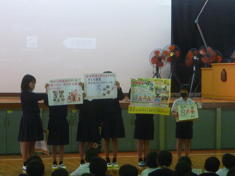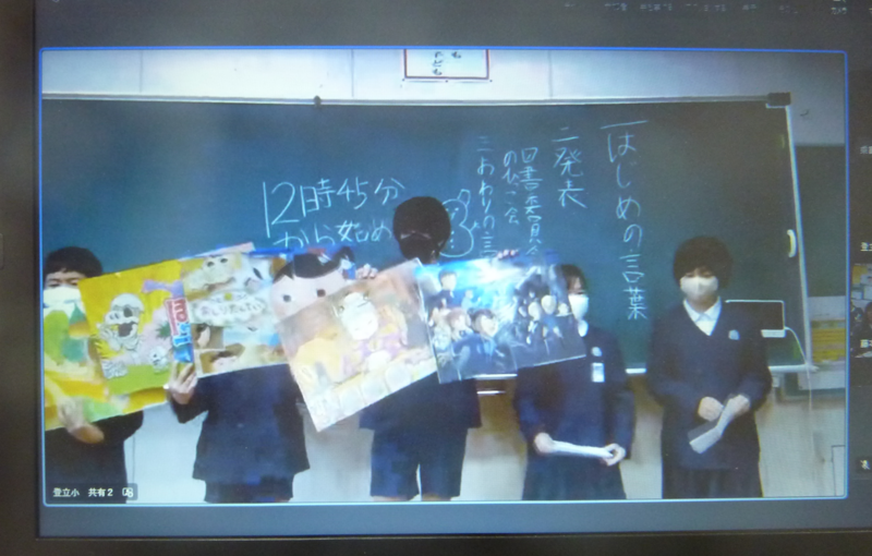 今日は、給食時間を利用して児童集会を行いました。気温も低かったため、テレビ会議方式で各教室をつなぎました。図書委員会のみなさんからは読書パズルの結果の報告。のびっこ会のみなさんからは共同募金の結果の報告がなされました。二学期の児童会活動も盛りだくさんでした。「すすんで、自分で、自分たちで」のスローガンのもと、頑張り、学校を引っ張ってくれた子供たちでした。