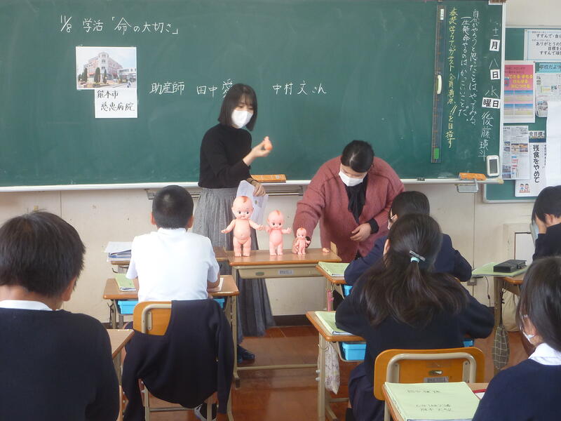 6年生が命をテーマに学習を行いました。熊本市にある産婦人科から助産師さんを講師にお迎えし、「生きる」ことについて考えを深める学びの時間でした。お話しいただいた言葉一つ一つに命を感じることができ、人と人がつながることの大切さ、命を尊ぶことの自覚を深めたのびっ子たちでした。