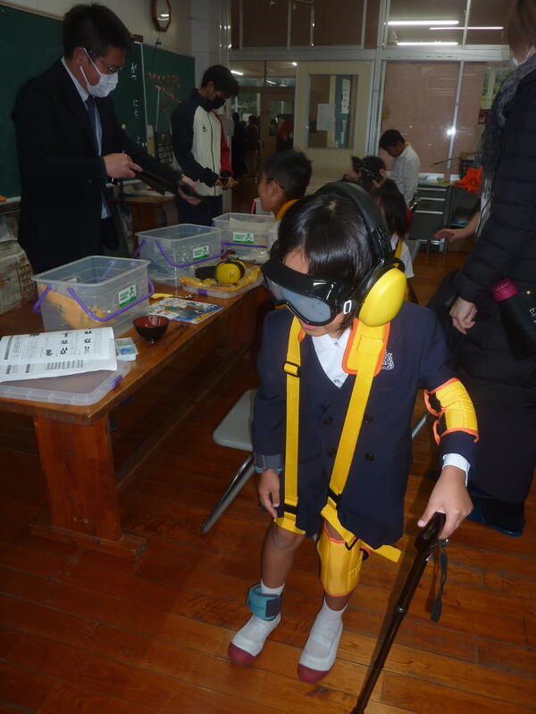 〔高齢者の方々の視覚・聴力を体験しました〕