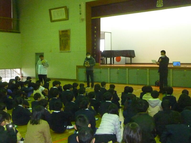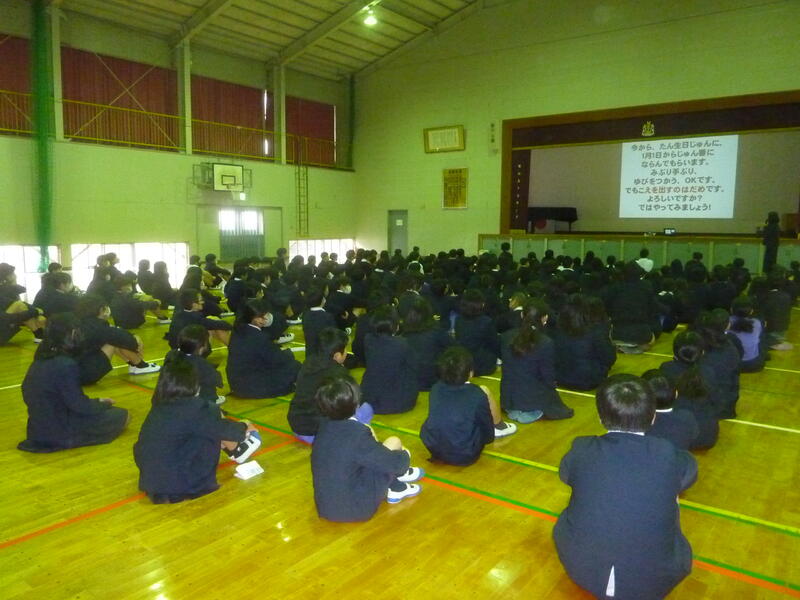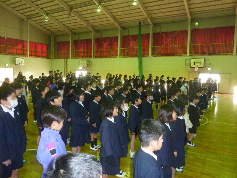 音楽集会を開きました。新春に響くのびっ子の歌声でした。冷え込んだ体育館は冷蔵庫のようでしたが、一人一人の歌声が重なり、熱気が生まれ、次第にポカポカとあたたかさを感じました。声の出し方、姿勢、声の合わせ方を学びながら「校歌」「君が代」を合唱したのびっ子たちでした。
