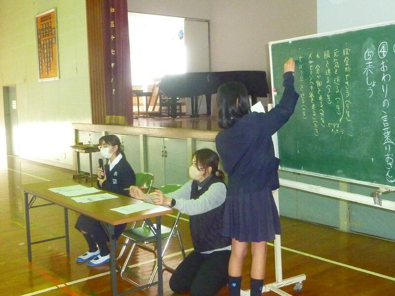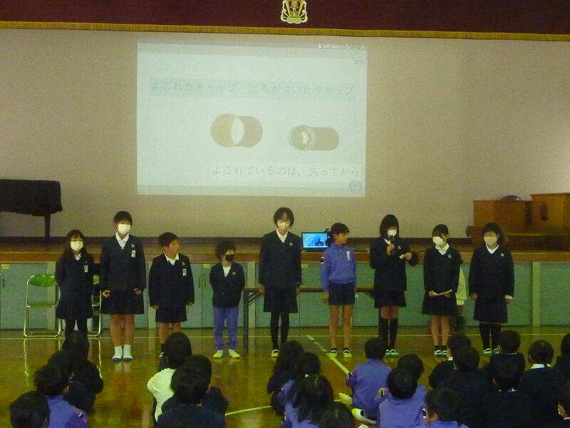 のびっこ会主催で児童集会を開きました。給食委員会、生活委員会、のびっ子会、そして、5年生から、学校生活に関する楽しい情報、ためになる情報が提供されました。