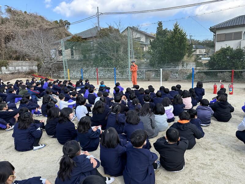 「火事だ逃げろ!」「でも、落ち着いてね。『お・か・し・も』で行動するよ!」今日は火災避難訓練を行いました。2階家庭科室からの出火を想定し、訓練を行いました。全員、方法を守りながら、迅速に行動し、避難できました。かかった時間「2分14秒」でした。ご指導いただいた北消防署の方からも、おほめの言葉をいただきました。避難訓練終了後は、消火訓練と煙訓練に取り組み、火事の怖さとともに、命を守る行動について深く学んだのびっ子たちでした。