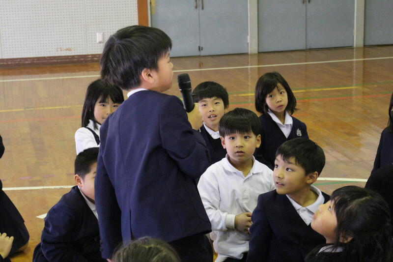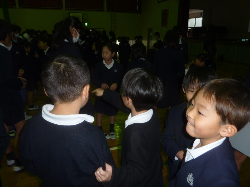 今日の朝活動は縦割り班活動でした。みんなわくわくしながら班作りに臨みました。今回は「ゲームを楽しもう」の回でジェスチャークイズで盛り上がりました。人前で表現する難しさも感じたのびっ子たちでしたが、正解してもらったときの喜びも大きかったようです。みんな笑顔でした。