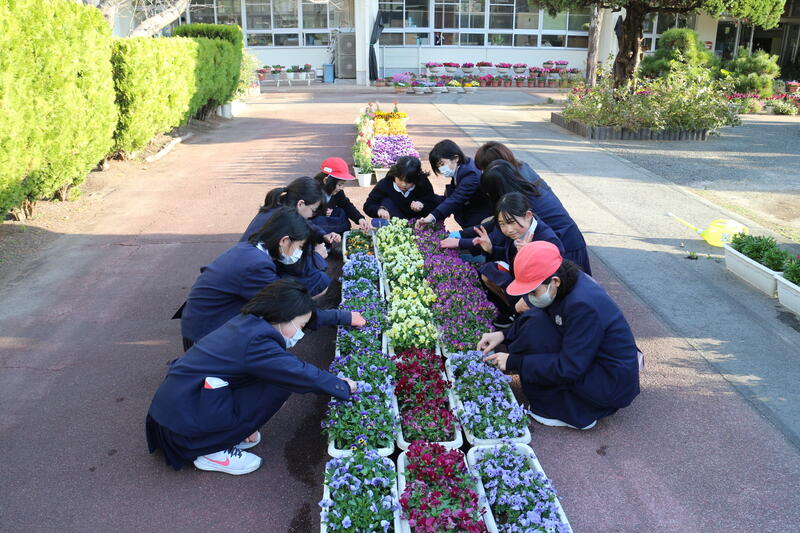 冷たい朝となりました。毎日登校すると、校内の清掃活動に取り組んでくれているのびっ子たちです。今朝は、掃き掃除を終えたのびっ子たちがプランターのまわりに集まり、草取りをしてくれていました。とても楽しそうに活動する姿でしたので、シャッターを切りしました。校内は多くの花々がもうすぐ満開の時期を迎えます。