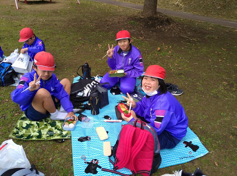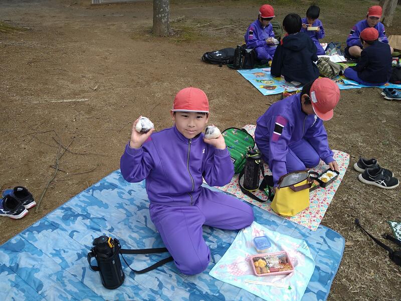 〇遠足スタートです。花海好公園へ縦割班で向かいます。〇公園到着後はおいしいお弁当をいただきました。