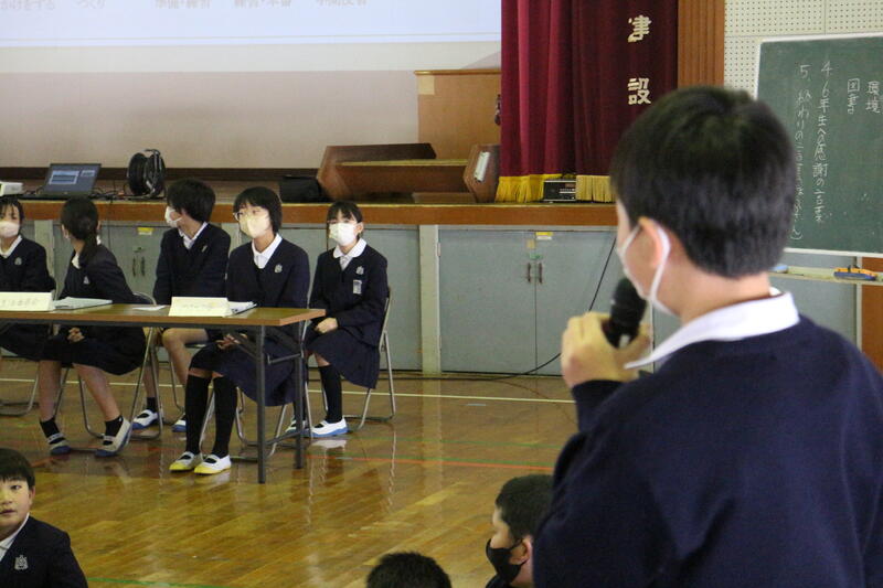今日は、のびっ子会主催の児童総会を開きました。各委員会から年間活動の報告がありました。その後はみんなの質疑でした。一年生から6年生までの全員が児童会活動への関心を寄せ、協力しながら進めてた一年でした。中心となってくれた委員長、副委員長さんに感謝します。(活動への質問と共に感謝の言葉が続きました)