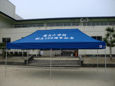 昨年度の創立150周年記念事業で頂いた寄付から、テントを購入しました。組み立ても簡単で、持ち運びも便利です。運動会当日は、本部に2張り立てます。