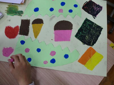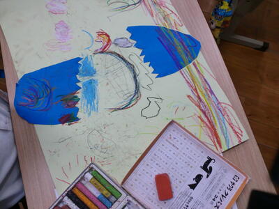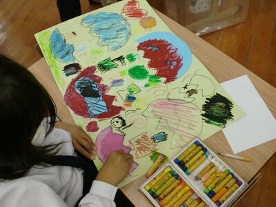 子供たちの絵って、とても夢がありますね。2年生の図工で、卵から産まれる、何が生まれるのか想像を膨らませて描いていました。