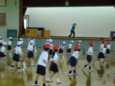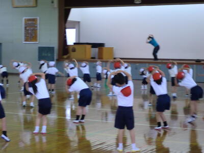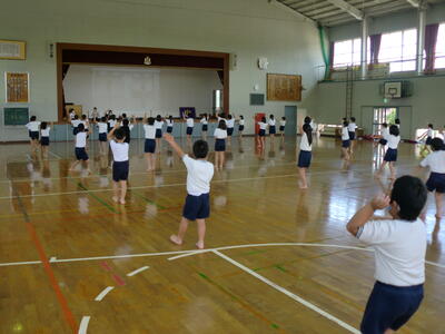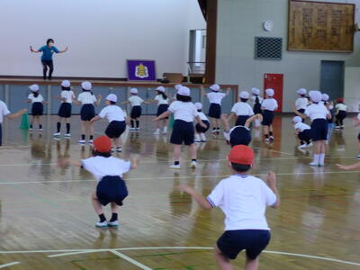 1,2年生は、YOASOBIのツバメのダンスです。決め、のポーズがかわいいですよ。まだ、体育館で動きの練習ですが、来週は運動場に出て行えそうです。