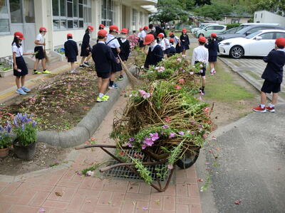 学校の花壇には、春咲きの花が咲き誇り、もうすぐ終わりを迎えようとしています。この時期は、植え替えの時期になります。順次、花壇の花を抜きながら、整備していきます。
