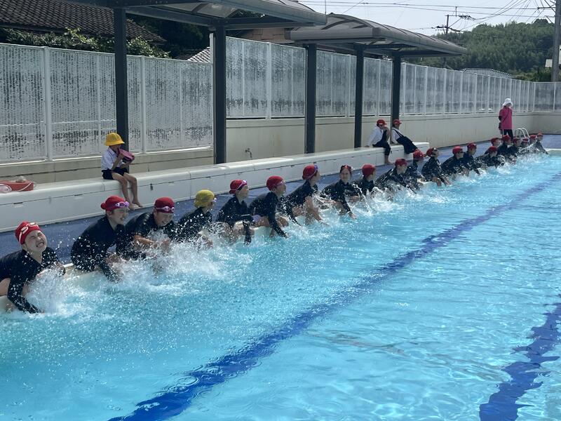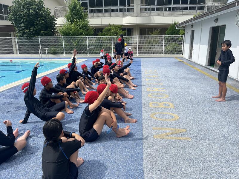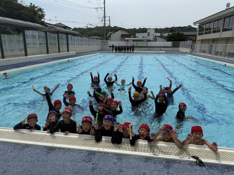 みんなでそうじを頑張ったプールに「友情の水」が満たされ、いよいよプールでの学習が始まりました。学年ごとに「プールびらき」を行い、今年高めるの泳力の目標、水の事故から命をまもること、そして、友情の水への感謝の気持ちを高めあったのびっ子たちでした。