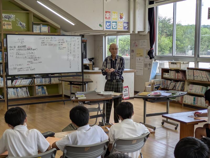 来週に修学旅行に経つ6年生。大きな学習課題である平和学習の学びが進んでいます。今日は講師の先生をお迎えし、戦時中の暮らし、そして登立小学校児童としての戦中戦後をお過ごしになった地域の方から講話をいただきました。