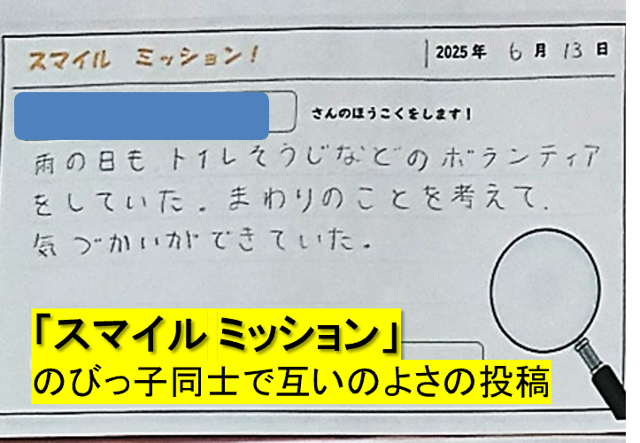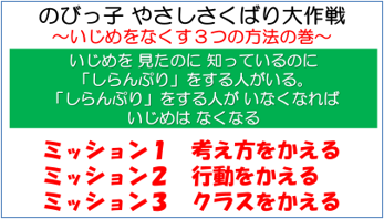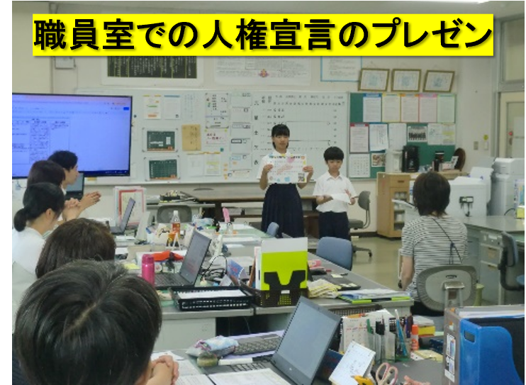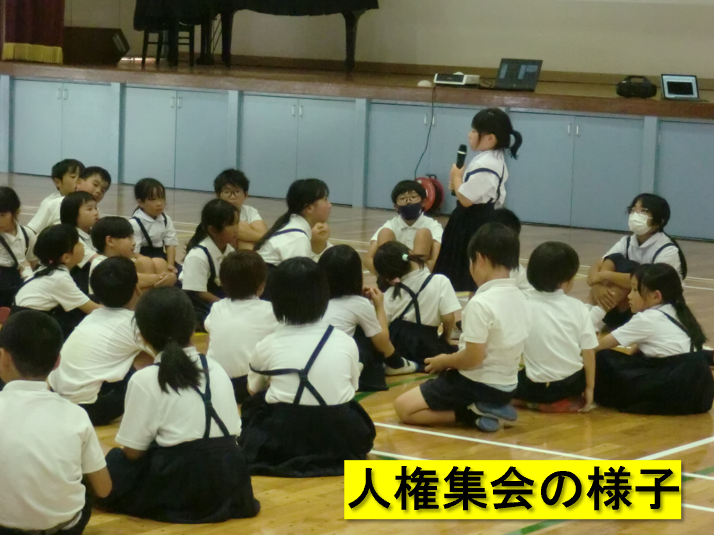 人権集会を開きました 学級においても、各クラスが人権を尊重する関わり方にむけて目標を立てました。その取組を全校で紹介し、全員で確認し合うことで、互いの言動を深く見つめる活動を進めています。のびっ子人権宣言がのびっ子たちの力で動き出すことを願っています。