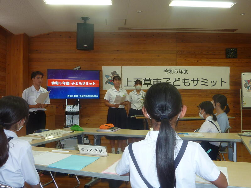 上天草市子どもサミット(市教育委員会主催)が開催されました。このイベントは市内すべての小中学校の児童会・生徒会の代表が集い、テーマをもとに情報交換を行うものです。今年のテーマは「ひとりひとりが輝く、いきいきとした児童会生徒会づくり」でした。のびっ子会から6年生2人が参加しました。「のびっこSDGs大作戦」の取組をまとめた資料をもとに堂々と発表する姿はとても立派でした。中学生の司会のもとで、「日常活動をもっといいものに」「上天草市全体で、共通して取り組めるものは」と議論も進みました。他校の子供たちや先輩たちとの交流もあり、同じふるさとに生まれ育った者としての仲間意識を感じていたようでした。この体験の成果を2学期の学びと生活に生かしてほしいと願います。