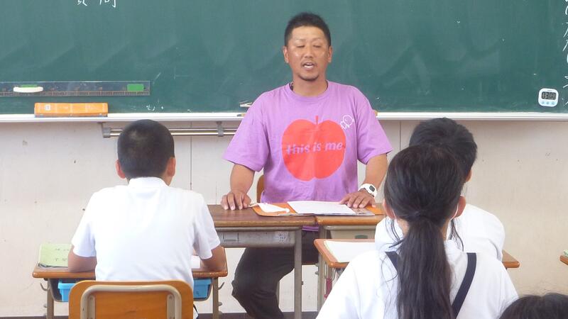 今日は、給食の時間に、ご指導をいただきました。大矢野中学校の池田先生にご来校いただき、食に関する指導をしていただきました。献立の揚げパンで口をいっぱいにしながら、笑顔で池田先生のお話を聞いていたのびっ子たちでした。