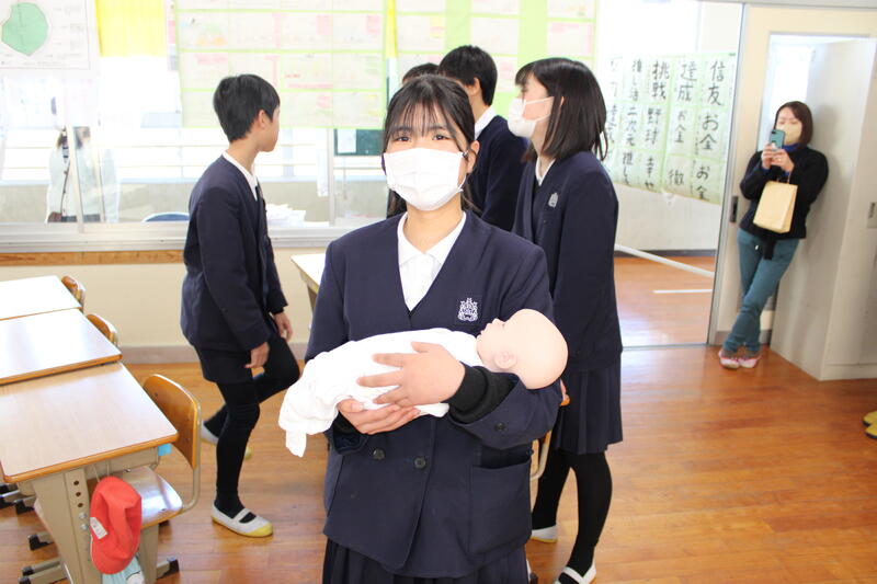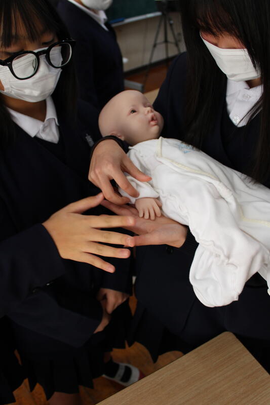 【新生児のモデルを抱く体験をさせていただきました】