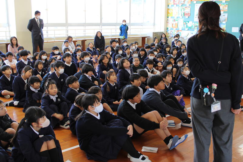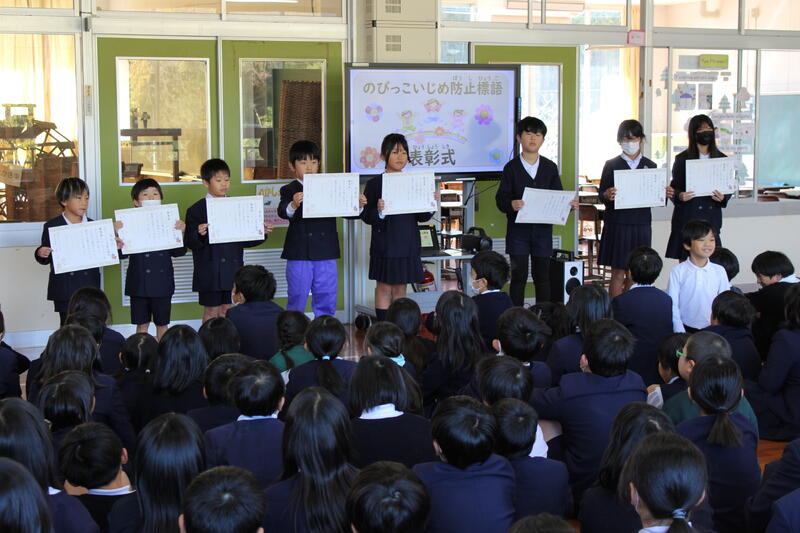 今日の児童集会は人権旬間に関わり「人権集会」でした。言葉の力をテーマに、生活と人との関わり方について、のびっ子全員で深く見つめ合いました。その後はPKTタイムで「ハイ・イハ・ドン」ゲームを通して「友だちと仲良くしたり、初めて合う人ともすぐに仲良くなれる力」を高めました。最後に全員で合唱した「にじ」が架かる青空のように心が晴れて、美しいのびっ子たちでした。