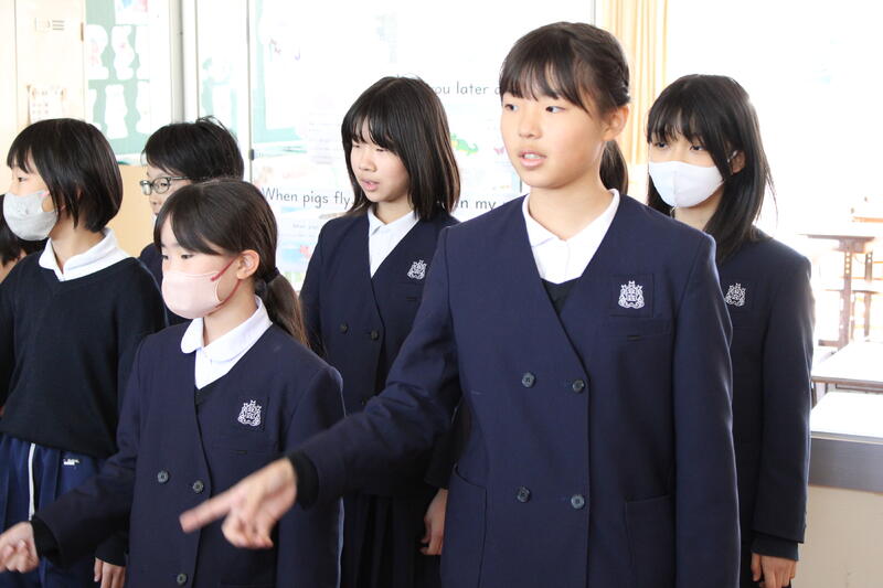 【低学年の代表のびっ子】【中学年の代表のびっ子】【高学年の代表のびっ子】【校歌を心を込めて、新たな年への希望を込めて合唱しました】