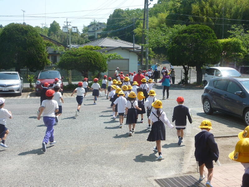 それぞれの学級が、一番近い出口から屋外への避難行動です。
