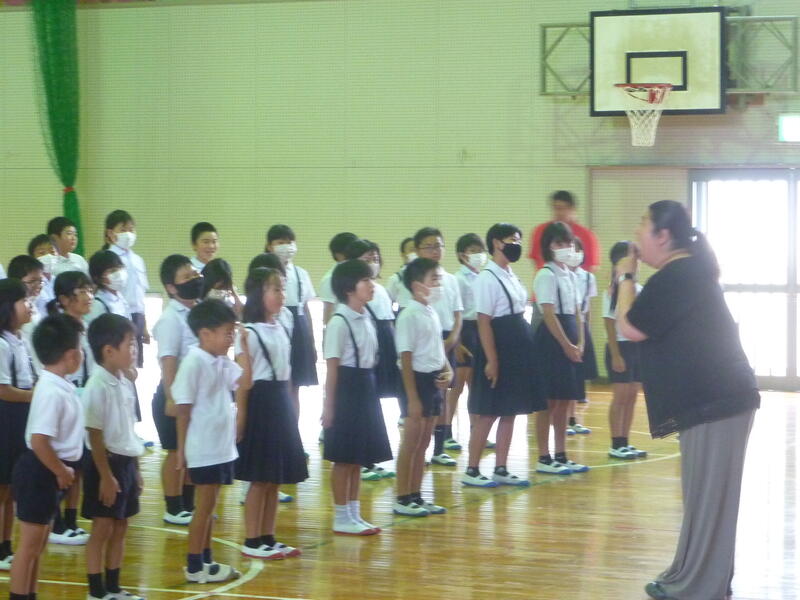 音楽集会を開きました。新春に響くのびっ子の歌声でした。冷え込んだ体育館は冷蔵庫のようでしたが、一人一人の歌声が重なり、熱気が生まれ、次第にポカポカとあたたかさを感じました。声の出し方、姿勢、声の合わせ方を学びながら「校歌」「君が代」を合唱したのびっ子たちでした。