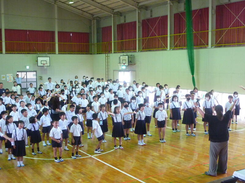 今朝は音楽集会を開きました。元気よく校歌を斉唱し、その後は今月の歌「虹」を合唱しました。朝の一声は、心も体もポカポカになります。とってもいい時間を過ごしたのびっ子たちでした。