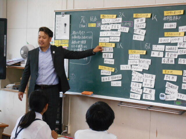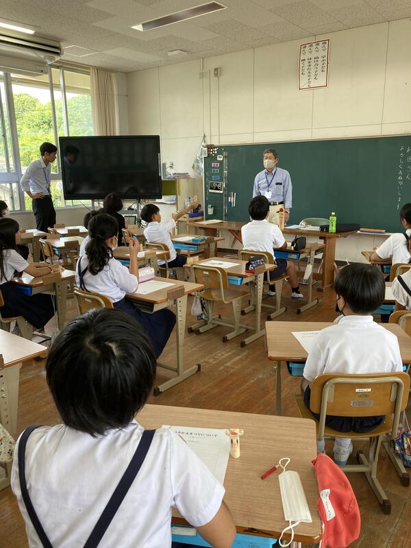5年生は、市の産業について、市役所の松山さんを講師に迎え、学びました。