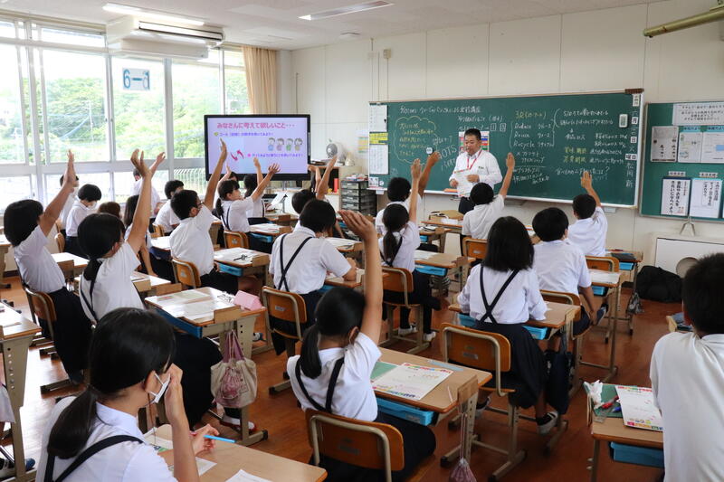 今日は、大矢野中学校から先生をお招きし、学習活動を行いました。