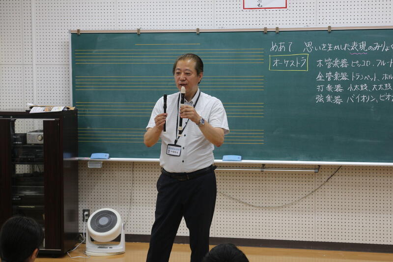 今日の6年生の音楽の授業は、特別講師をお迎えしての学習活動でした。講師の先生は龍ヶ岳中学校の中嶋校長先生です。「思いを生かした表現の魅力を感じ取ろう」を学習のめあてに、楽器から音譜、リズム、曲、オーケストラ、作曲者の思いへと、どんどん学びが広がり、曲作りへの意欲を高めた子供たちでした。次回は歌唱をテーマにご指導いただきます。中嶋校長先生、ありがとうございました。