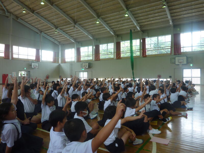 今日の5校時は児童集会でした。のびっ子会の企画運営で、よりよい学校生活について提案がありました。各委員会からは活動目標、年間計画の紹介があり、アイディアいっぱいの委員会活動が計画されていました。のびっ子会からは、SDGsに注目した「のびっ子SDGs大作戦」の予告があるなど、盛りだくさんの児童総会となりました。総会の最後には、先生たちからたくさんの感動を伝える言葉がのびっ子たちに伝えられました。「すすんで、自分で、自分たちで」の学校づくりが進んでいます。