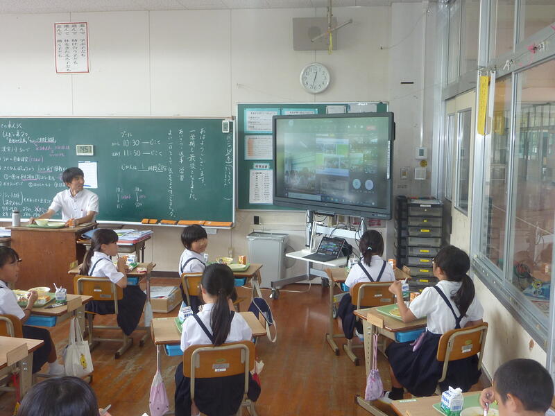本日、保護司の井上さんが来校され、「社会を明るくする運動」をPRされました。給食時間でしたので、リモートによりお話をお聞きしました。「家族に学校での出来事など、何でも話せる明るい家庭にしましょう。」「友達と仲良く、いじめのない明るい登立小学校にしましょう。」「学校に来るとき、帰るとき、地域の方に大きな声であいさをして、明るい地域をつくりましょう。」と3つのことを願いとして伝えられました。のびっ子が進めている「えがお大作成」と重なるところがあり、学校生活にも意欲を高めたのびっ子たちでした。