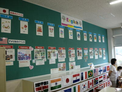 背面黒板には日本のイベントとアメリカのイベントを月ごとに掲示
