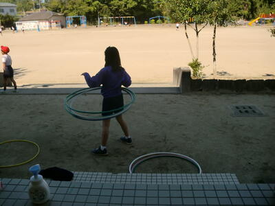 昼休みにふと運動場に目をやると、3人の子供がフラフープを回していました。それも、一つでなく3つ4つ一緒に回しています。結構上手でした。コツをつかむとどんどん回せるようになりますね。