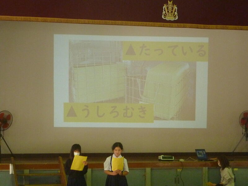 のびっこ会主催で児童集会を開きました。給食委員会、生活委員会、のびっ子会、そして、5年生から、学校生活に関する楽しい情報、ためになる情報が提供されました。